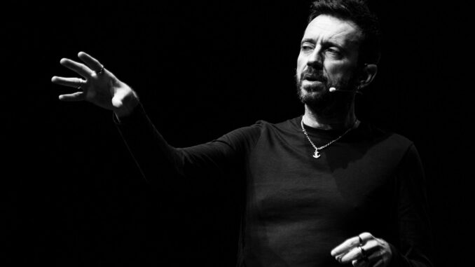 Il giornalista e scrittore Andrea Scanzi, già autore a teatro di spettacoli analoghi su Giorgio Gaber, Fabrizio De André, Ivan Graziani e Pink Floyd, ne ripercorre la carriera con particolare attenzione al (lungo) periodo d’oro che va da “L’era del cinghiale bianco” a “Gommalacca”, senza però dimenticare le sperimentazioni degli esordi e al tempo stesso gli ultimi lavori discografici, le cover e le tante collaborazioni.
