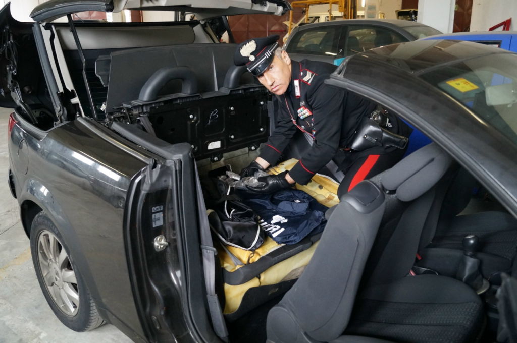 Da un primo controllo effettuato sul luogo gli operanti verificavano che l’interno della carrozzeria era stato verosimilmente manomesso considerata la presenza di una porticina di metallo incollata sul telaio e fatta di diverso materiale rispetto allo stesso.