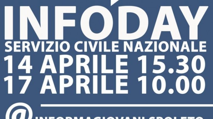 Due incontri informativi il 14 e il 17 aprile a Palazzo Mauri. Due giornate sul Bando ordinario di Servizio Civile 2015. Questi gli incontri informativi che l’Informagiovani del Comune di Spoleto ha organizzato nella Biblioteca a Palazzo Mauri.