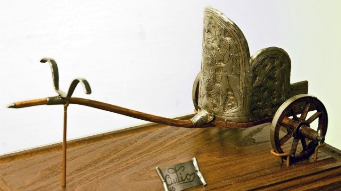 SPOLETO – Eccola la “Biga di Monteleone”, una fedele e suggestiva riproduzione, una simpatica miniatura uscita dalla “fucina” spoletina di Giacomo Cintio, un artigiano artista molto originale che sta meravigliando per la sua creatività. Il modellino della “Biga” sarà in mostra a Monteleone da venerdì 17 a domenica 19 su diretto invito del sindaco Marisa Angelini che aveva visto la preziosa opera d’arte esposta a Norcia.. E’ una “biga” in formato ridotto, ma splendida e perfetta, che nella mostra sarà affiancata anche da altre produzioni dell’artista realizzate con una tecnica particolare. Le sue opere sono firmate “I colori del ferro”, e tutto parte da una lastra di ferro, anche arrugginita, che lui con martello, scalpello, punteruoli e altri suoi arnesi segreti, personalizzati, inventati e realizzati da lui, riesce a trasformare a seconda del soggetto e di quanto la sua genialità gli suggerisce al momento in cui si rinchiude nel laboratorio: un vero e proprio antro magico dove risuonano i battiti del martello sull’incudine o i soffi del mantice per alimentare il carbone ardente che rende più malleabile il ferro. Qui è nata la “biga”, qui nascono le riproduzioni in scala ridotta di molini a grano, molini a olio, riproduzioni di officine con relative attrezzature funzionanti. Qui nascono pannelli dove a rilievo Giacomo riproduce vedute di Spoleto e di altre città dell’Umbria. A Monteleone saranno presenti opere relative ad alcune città dell’Umbria e anche pannelli “etruschi” riproducenti momenti di vita dell’antico e ancora misterioso popolo.
