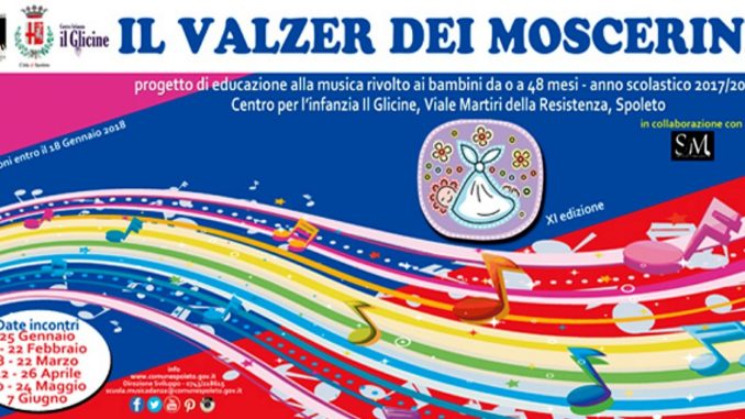 SPOLETO – Sono aperte le iscrizioni alla XI edizione dei “Valzer dei moscerini”, progetto rivolto a bambini da 0 a 48 mesi che si pone, quale obiettivo principale, quello di guidare ogni bambino nel percorso di apprendimento del linguaggio espressivo musicale, ricalcando la naturalezza e la spontaneità della lingua parlata, creando occasioni e stimoli per insegnare al bambino ad esprimere potenzialità presenti in questa prima fase di vita, più densa di capacità di sviluppo, competenze e conoscenze.