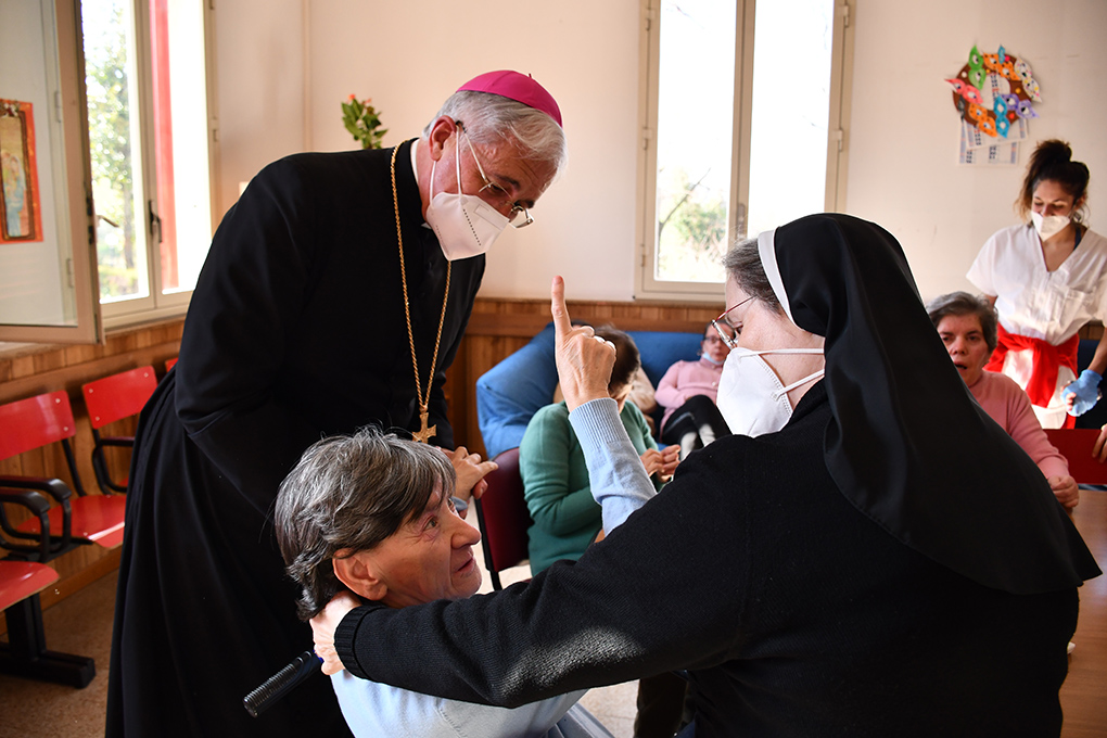 «Oggi la Chiesa – ha detto mons. Boccardo – rifletta sul grande mistero della vita e qui a Montepincio si custodisce la vita più fragile e ferita, che è sempre opera di Dio creatore». Poi, l’Arcivescovo ha commentato il Vangelo del giorno: «Dio chiama e l’uomo (nel Vangelo è la figura di Pietro) riconosce la sua piccolezza; ma è in questa situazione che Dio ci invia, conta su di noi nonostante le nostre debolezze. Quante volte anche noi come Pietro ci siamo trovati con le reti vuote: ci siamo impegnati tanto, ma non ci ritroviamo nulla. Ecco la sfida di Gesù: nonostante tutto, fidati e ricomincia ancora…forse devi gettare le reti da un’altra parte, forse ti sei fidato troppo di te stesso. Ascoltando la sua parola, allora, riusciremo a gettare le reti dalla parte giusta».