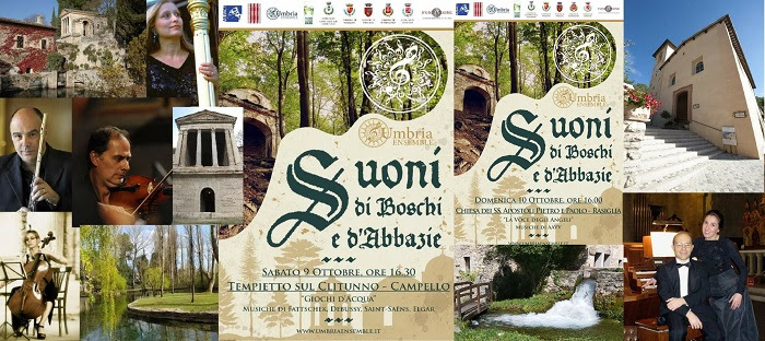 Originalità ed eleganza nell’armonica scansione delle colonne e nel valore artistico delle decorazioni; ma anche nel perfetto equilibrio con l’ambiente naturale circostante delle sorgive nelle quali si specchia. Giochi di acqua e di luce che i millenari marmi riflettono, e che si traducono in Musica Sabato 9 Ottobre, dalle 16:30, con “Giochi d’Acqua” il Concerto di UmbriaEnsemble (Giovanni Mareggini, Flauto; Emanuela Degli Esposti, Arpa; Luca Ranieri, Viola; M. Cecilia Berioli, Violoncello) realizzato in collaborazione con il Comune di Campello sul Clitunno. Un raffinatissimo, soave ed intenso viaggio musicale da Saint-Saëns, ad Elgar, a Debussy su note ispirate alla Natura. Info e prenotazioni: al numero 3295603345 o scrivendo a: ufficio.comunicazione@comune.campello.pg.it