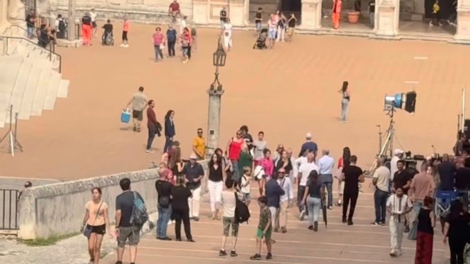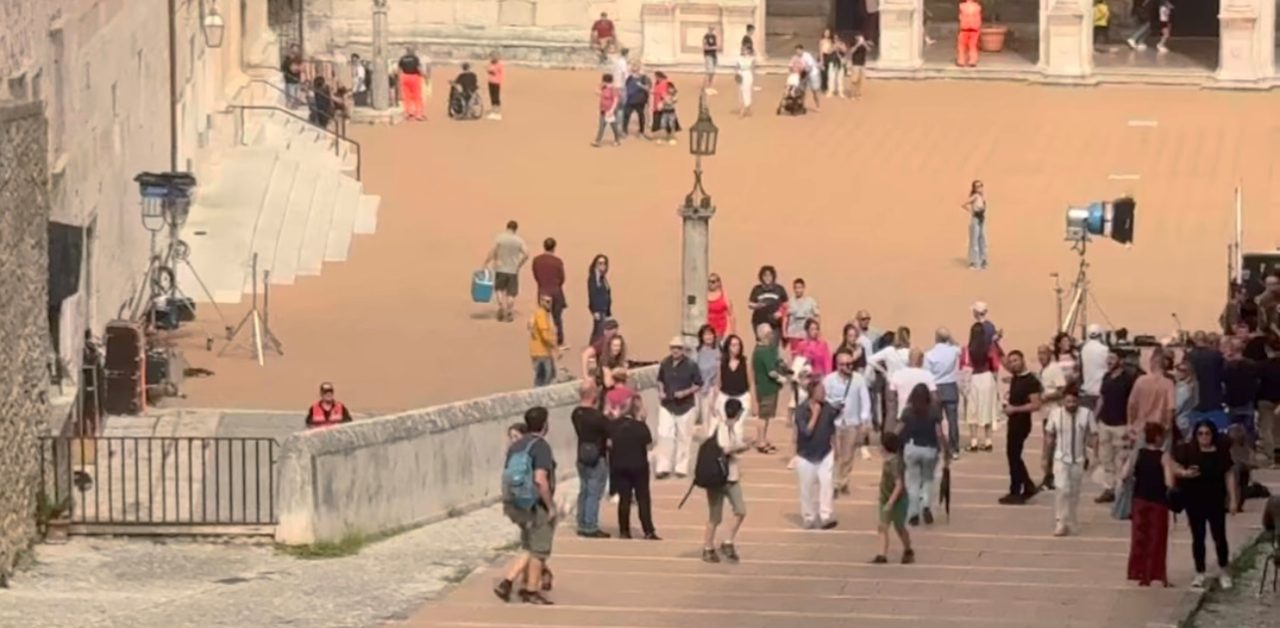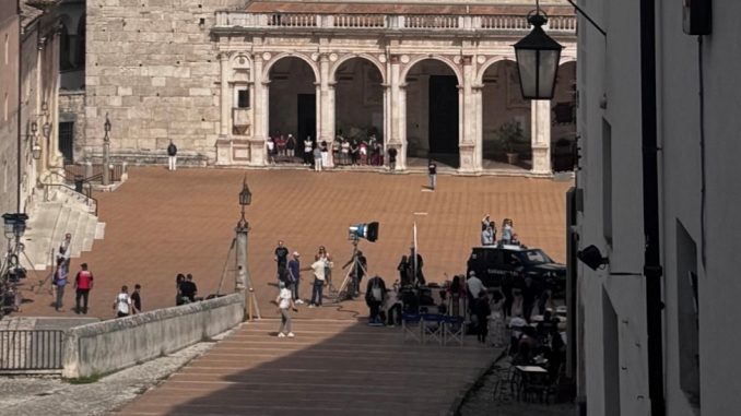 Riprese blindate a Spoleto, folla in piazza Duomo per l’attore