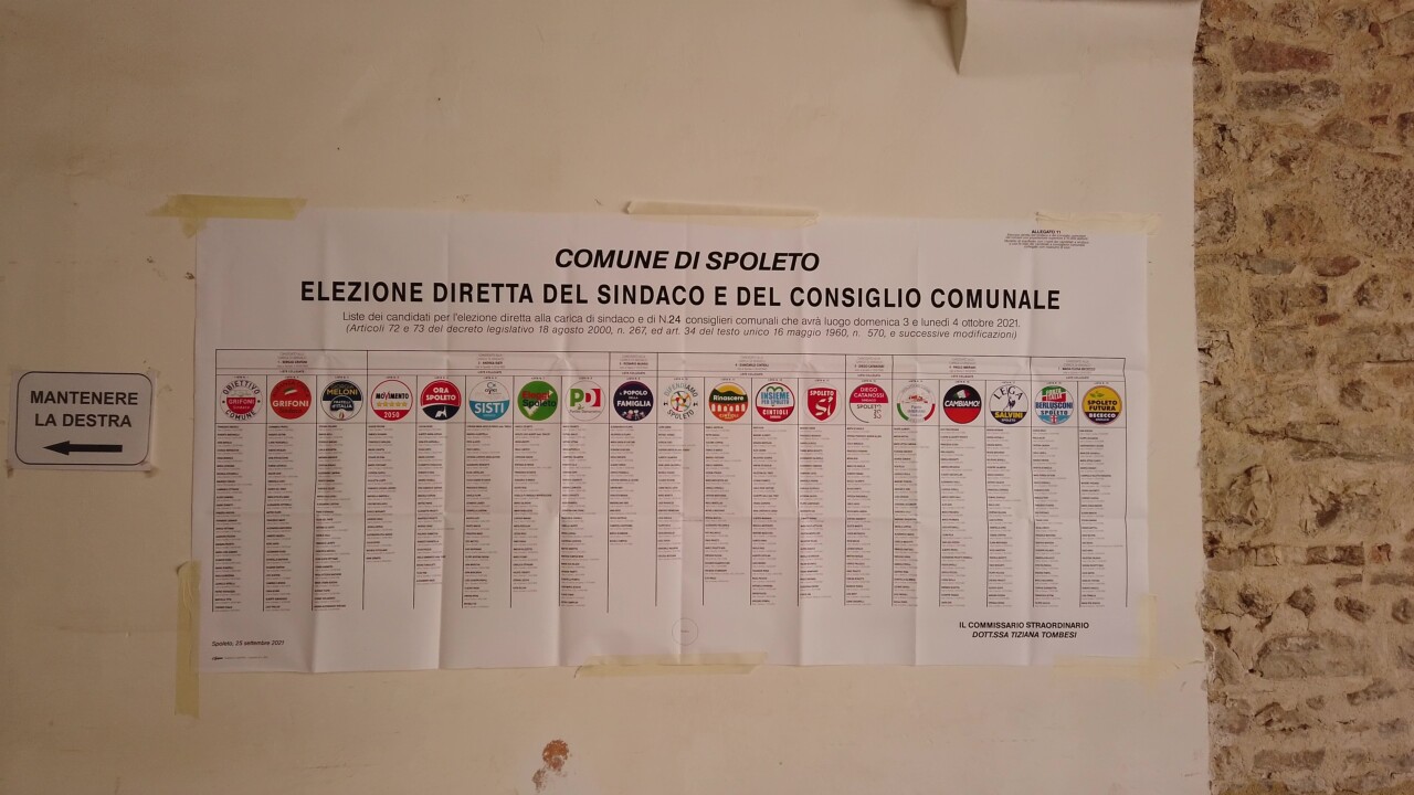 Sono infatti in lizza Andrea Sisti (Pd, M5s, Eleggi Spoleto, Civici Per, Ora Spoleto), Giancarlo Cintioli (Insieme per Spoleto, Rinascere per Cintioli, Difendiamo Spoleto, Spoleto Sì) e Diego Catanossi (Spoleto 2030), Paolo Imbriani (Lega, Spoleto nel Cuore, Cambiamo), Sergio Grifoni (FdI, Alleanza civica, Obiettivo comune), Maria Elena Bececco (Fi, Spoleto futura) e Rosario Murro (Popolo della Famiglia).