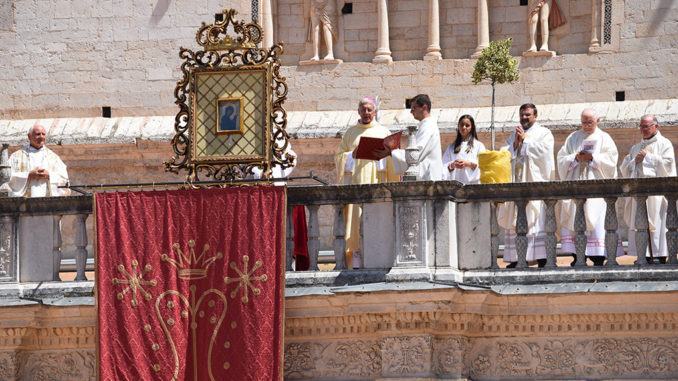 La sera precedente la festa, il 14 agosto, nel rispetto delle attuali prescrizioni per contrastare il diffondersi del Covid-19, contrariamente a quanto prevede la tradizione spoletina, purtroppo non si potrà effettuare la processione con la Santissima Icone dalla Basilica di S. Gregorio al Duomo. Alle 21.00, però, in Cattedrale l’Arcivescovo presiederà un momento di preghiera mariano. «I figli di Spoleto e dell’intera Diocesi – afferma mons. Boccardo – si raccolgono ancora, come tante volte lungo i secoli, intorno alla Vergine Maria per cercare rifugio e per affidare alla sua protezione materna le sfide che il futuro nasconde.
