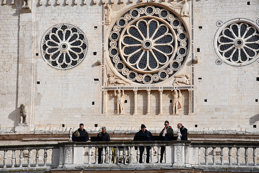 Omaggio al patrono è stato il gruppo di ottoni “G. Fantini”. Al termine della Messa, i fedeli sono stati accolti in Piazza Duomo da alcuni pezzi musicali eseguiti dalla loggia centrale del Duomo dal gruppo ottoni “G. Fantini” di Spoleto. Una tradizione, che oramai si rinnova da qualche anno grazie alla proficua collaborazione con il Pievano di S. Ponziano don Pier Luigi Morlino.