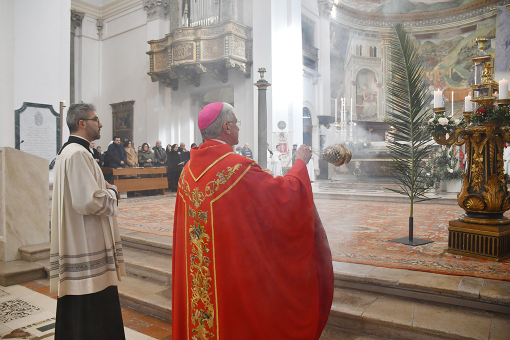 La celebrazione officiata, domenica 14 gennaio davanti a tanti spoletini saliti in Duomo, riempendolo in ogni sua zona. Col Presule hanno concelebrato, il vicario generale don Sem Fioretti e i presbiteri delle tre Pievanie che insistono nel Comune di Spoleto, quella appunto di S. Ponziano, quella di S. Giovanni Paolo II, quella di S. Giacomo e quella di S. Giovanni Battista. Per l’occasione è giunto anche il rettore del Seminario regionale umbro “Pio XI” di Assisi don Francesco Verzini. Il servizio all’altare è stato curato dai seminaristi diocesani e dai ministranti, coordinati dal cerimoniere don Pier Luigi Morlino. La liturgia è stata animata dalla corale diocesana diretta da Mauro Presazzi, con all’organo Angelo Silvio Rosati.
