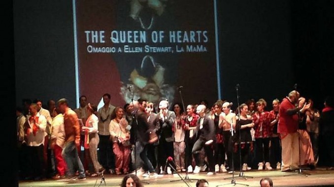 SPOLETO – Una serata straordinaria per omaggiare il genio di Ellen Stewart, “pioniera” – così l’ha definita il New York Times – del Teatro Off Off Broadway, una regista e produttrice teatrale di fama internazionale, che Spoleto, cui la legava un rapporto speciale e intenso, ha ricordato ieri, in un affollatissimo Teatro San Nicolò, grazie al contributo di materiale video ma sopratutto grazie alle testimonianze artisti che hanno collaborato e conosciuto Ellen Stewart. Tante emozioni quindi per “La Regina di cuori” (The Queen of Hearts) lo spettacolo, fortemente voluto dall’Assessorato alla Cultura di Spoleto guidato dal premio Oscar Gianni Quaranta, che ha celebrato ieri la famosa regista e produttrice conosciuta in tutto il mondo come La MaMa. Nato da un’idea della compositrice e regista Elizabeth Swados lo spettacolo é stata una celebrazione festosa e vivace, con tanta musica, danza e teatro: un mosaico poliedrico di bellezza e creatività per comunicare al pubblico la coinvolgente energia vitale di un personaggio come Ellen Stewart.