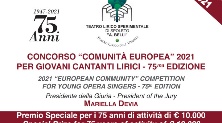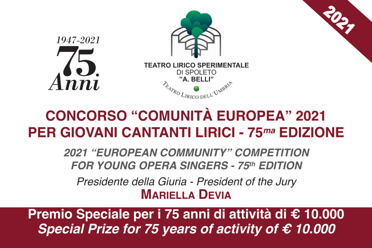 75ma edizione 2021 del concorsoComunità Europea” per giovani cantanti lirici a pochi giorni dalla chiusura delle adesioni termine di presentazione domande: 22 aprile 2021 confermata la 75° edizione del concorso di canto “comunità europea” di Spoleto.